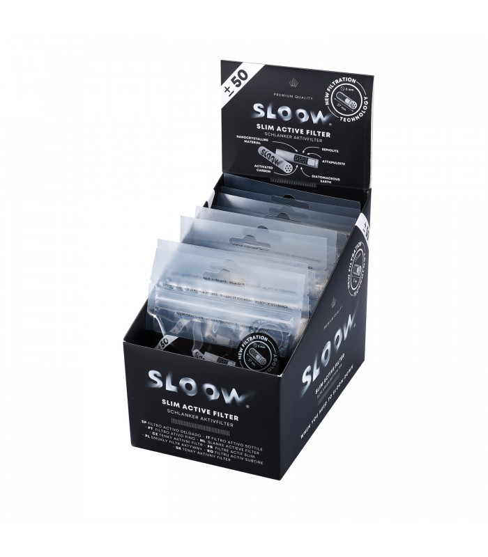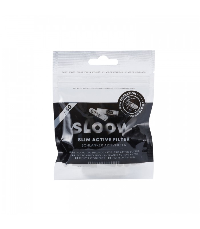 Висококачествен активен въглен филтър, създаден специално за по-чисто, по-хладно и по-приятно пушене. Филтрите SLOOW комбинират активен въглен с керамика, които ефективно намаляват катрана, фините частици и дразнещите вещества, без да влияят негативно на вкуса и ефекта.