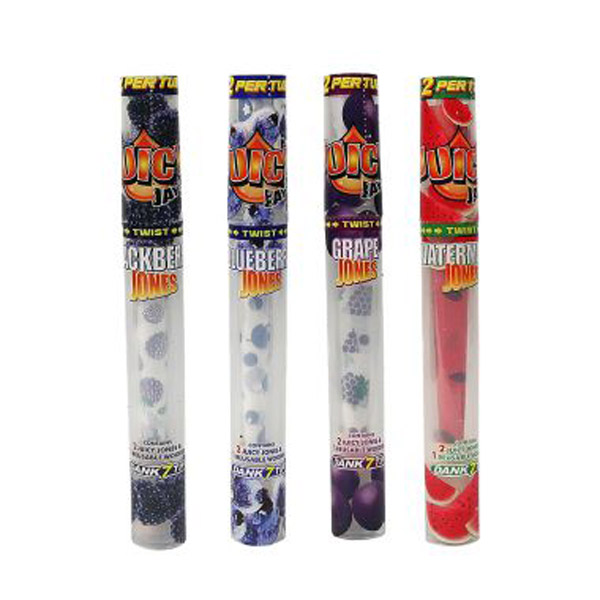 Ароматизираните конуси с дървен мундщук Juicy Jones се предлагат с аромат на Диня, Грозде, Къпина и Боровинка.