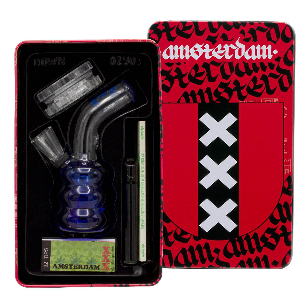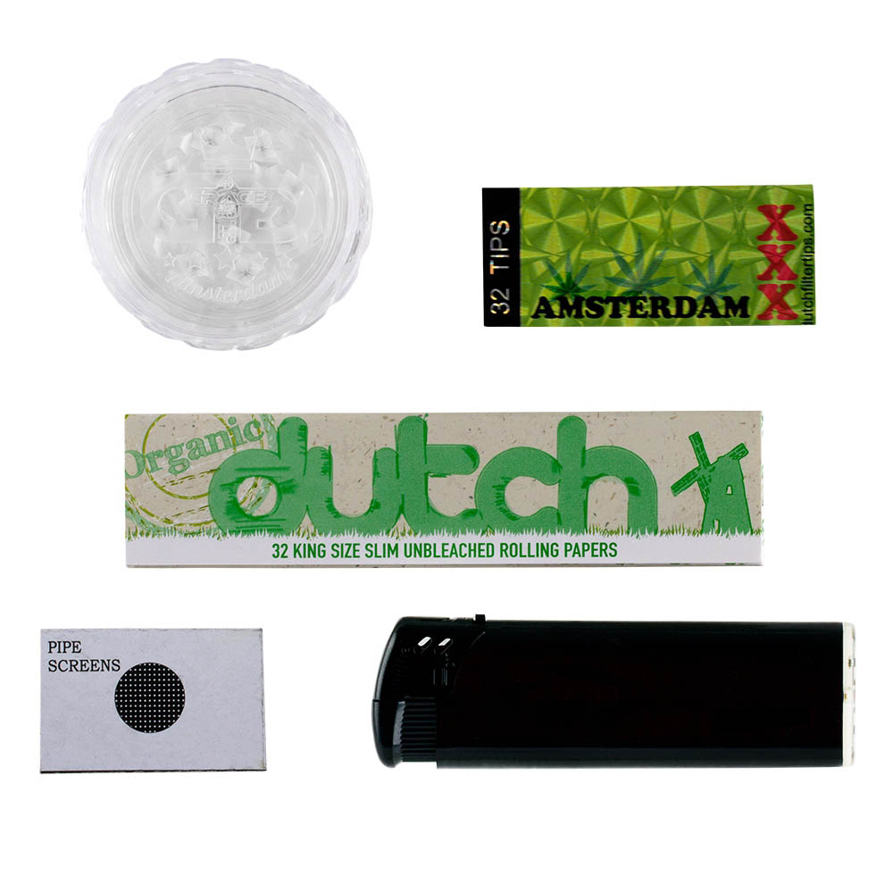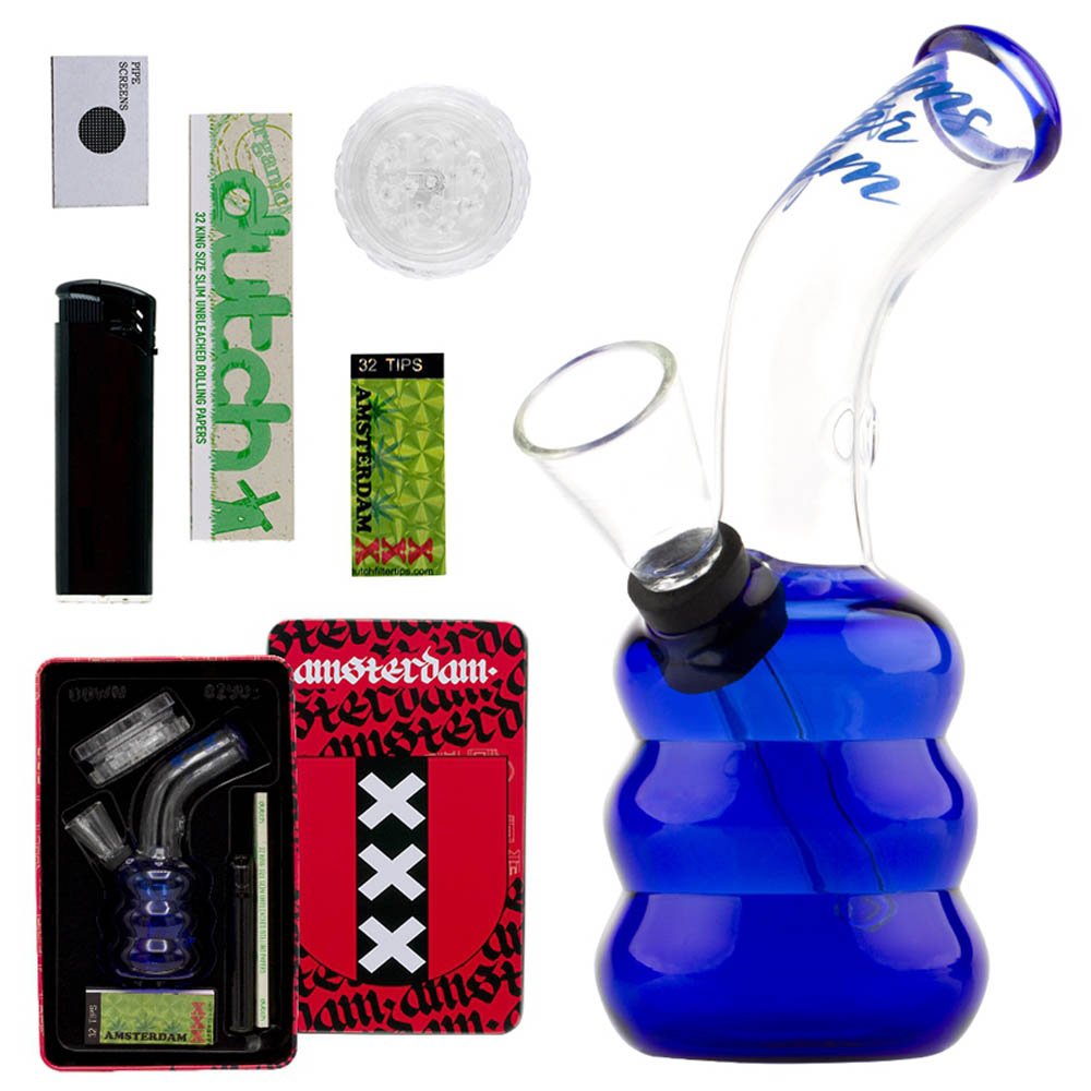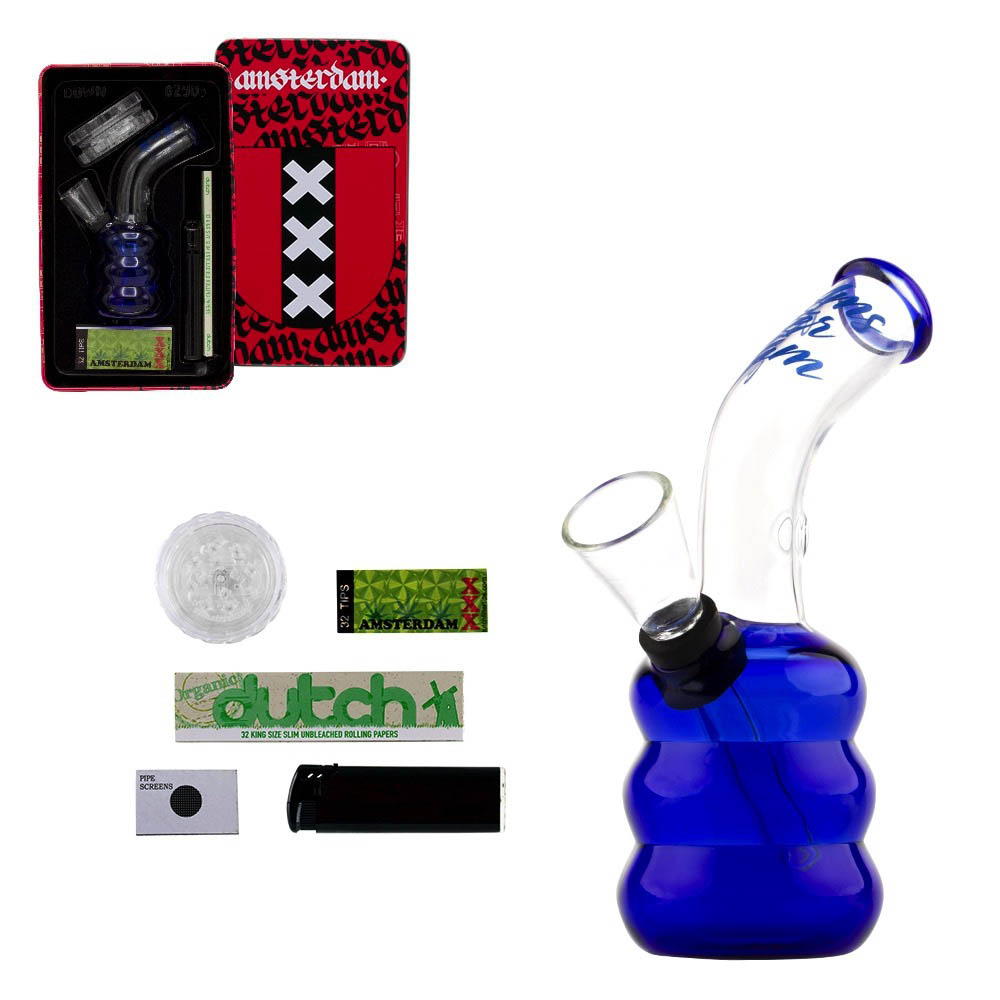 Kомплект AMSTERDAM BLUE съдържа всичко необходимо за едно страхотно изживяване – от смилането на билката до първата дръпка.