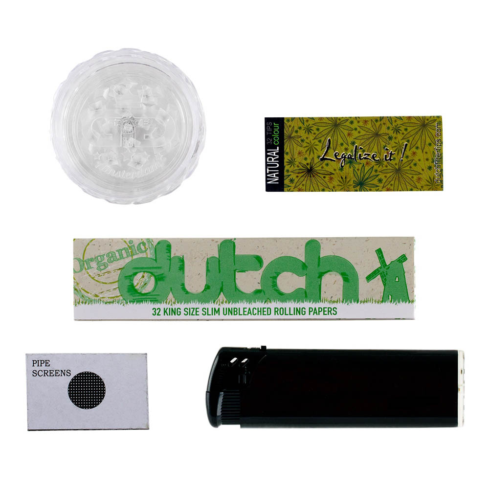 Kомплект AMSTERDAM GREENLINE съдържа всичко необходимо за едно страхотно изживяване – от смилането на билката до първата дръпка.