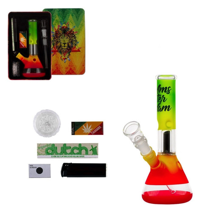 Kомплект AMSTERDAM RASTA съдържа всичко необходимо за едно страхотно изживяване – от смилането на билката до първата дръпка.