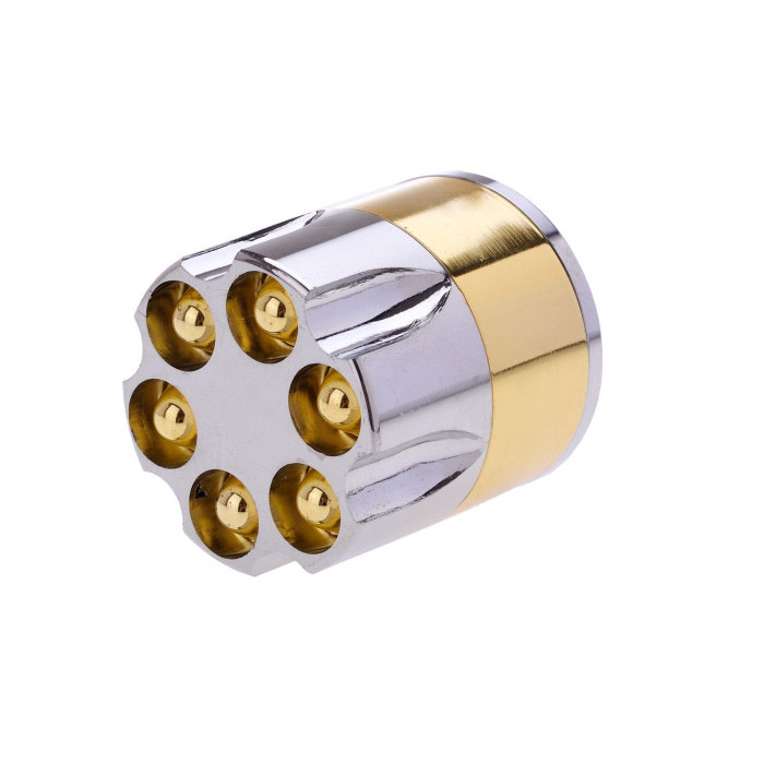 Метален грайндер Champ High Bullet e с формата на барабан от револвер.