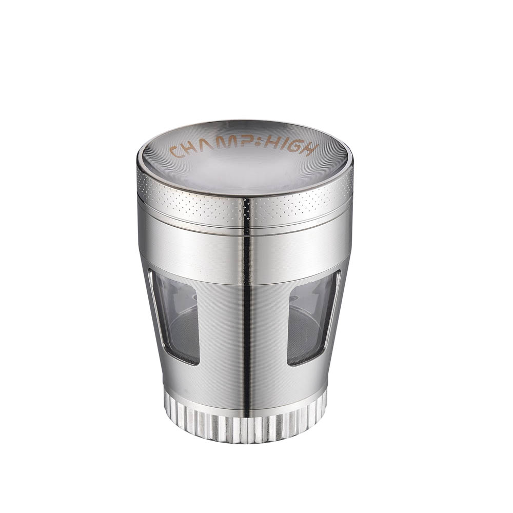 Метален гриндер Champ High се състои от четири части, като полинаторът е снабден с малка лопатка.