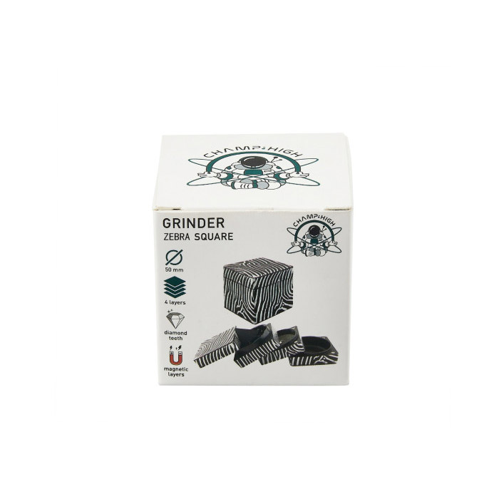 CHAMP HIGH ZEBRA е метален грайндер с формата на куб.