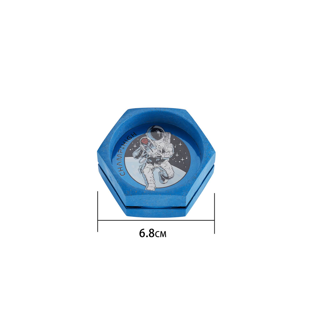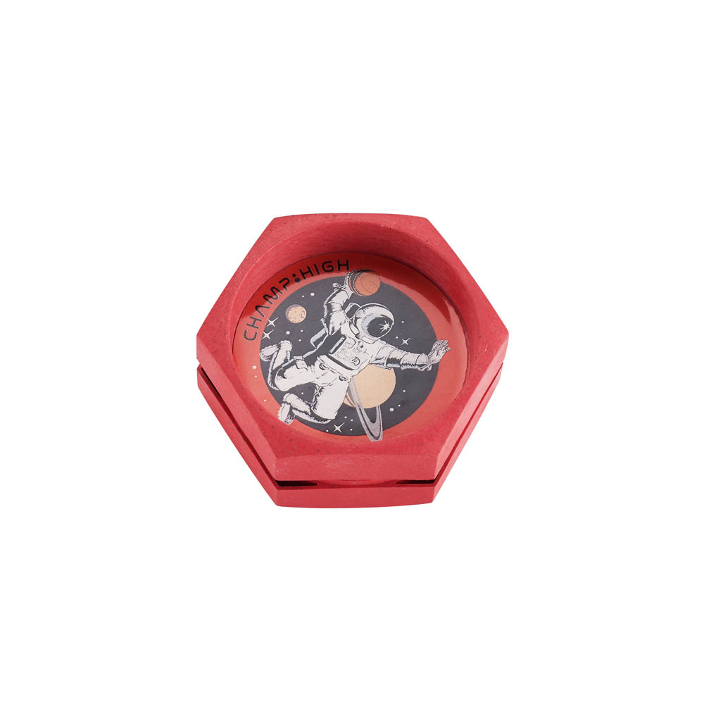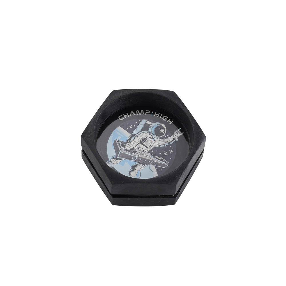 Този интересен шестоъгълен грайндер Champ High е едно от най-новите попълнения на марката. С внушителните размери от 6.8cm и зъбци с диамантена форма, той се превръща в един от най-солидните пластмасови грайндери Champ High. Предлага се в четири различни цвята с различен астро дизайн на капака.