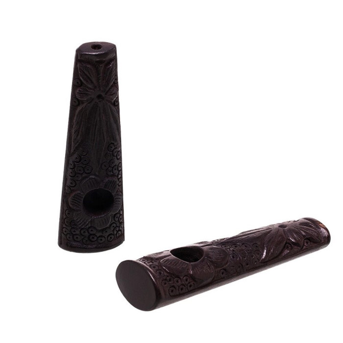 Лулата е направена изцяло от дърво, с красиви орнаменти на листо и цвете.